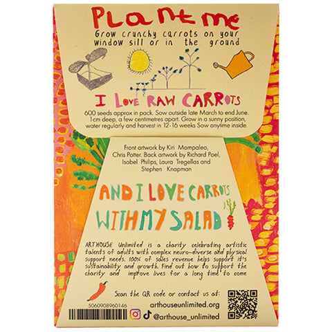 Plant your own wholesome veg in your garden or windowsill with this wonderful range of Seed packets featuring colourful collaborative artwork by the artists. There are approximately 600 Carrot seeds in this beautifully designed envelope by a group of artists. A truly unique and sustainable gift to keep or share.