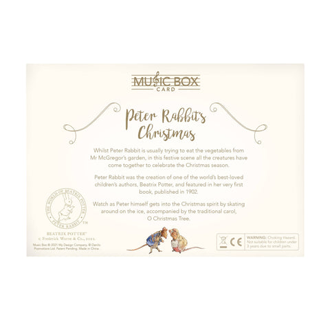 MUSIC | ‘O' Christmas Tree Open the Music Box Card to reveal a beautifully festive, musical storytelling scene. Listen to the music and watch the character magically travel around and around to a classic Christmas tune. The front of the music box card looks like a conventional Christmas card, but opens to reveal a magnetic dancing character which moves around the card to the music when you press play. With a space to write a personal message on the back, every card also comes with a kraft board envelope.