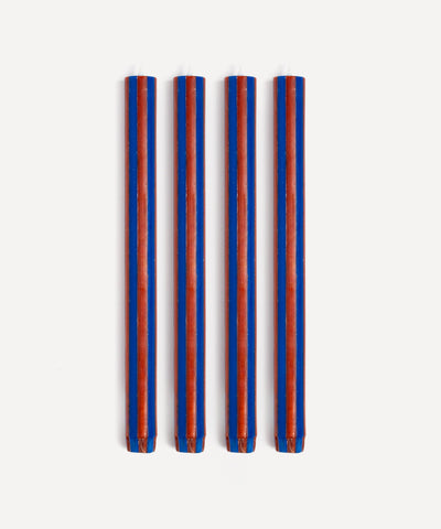 Stripe Dinner Candles - Indigo Blue / Terracotta